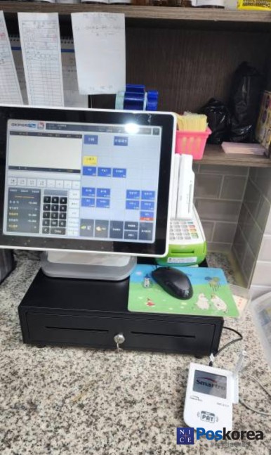 포스기와 유선단말기 k-1000을 설치해 드렸어요.
